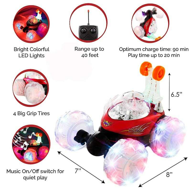 Wbudowana muzyka idealnie pasuje do sztuczek, które robi ta zabawka. Ponadto zabawka jest cały czas oświetlona kolorowymi diodami działających za dnia jak i w nocy niesamowite efekty świetlne