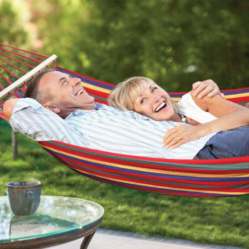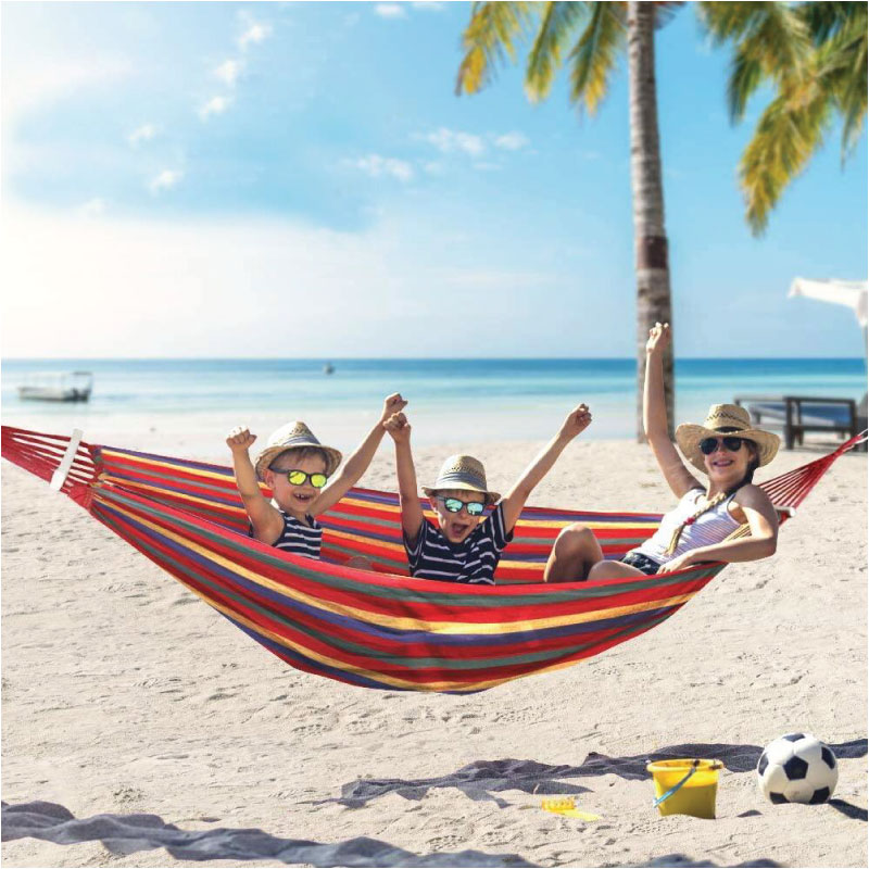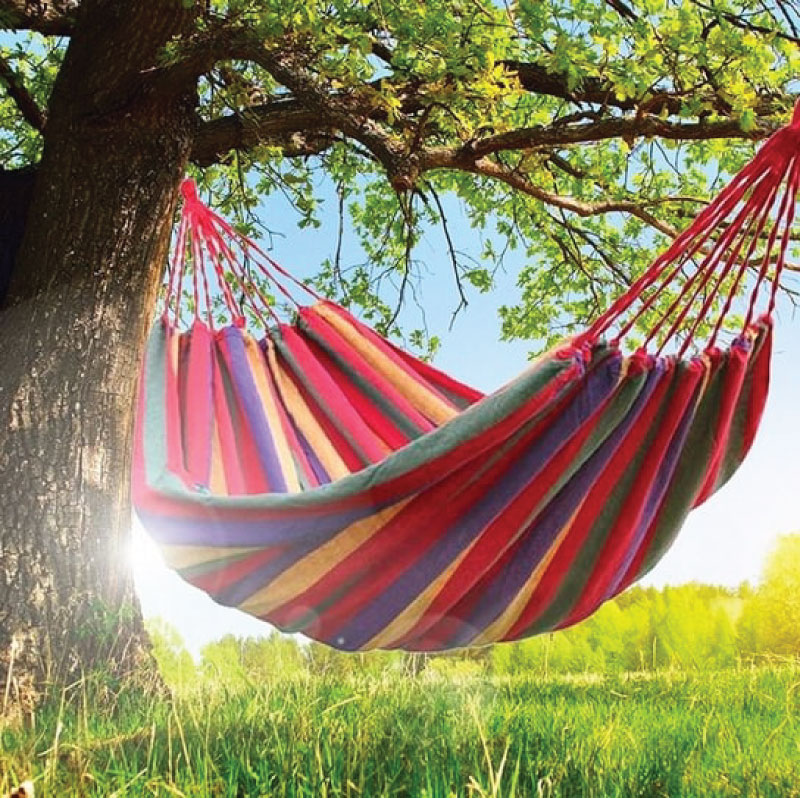 Wystarczy oba końce przywiązać do stabilnej powierzchni – haków, słupków czy drzew. Doskonały do zawieszenia na tarasie. Nawet, jeśli nie masz domu z ogrodem, nadal możesz się cieszyć wygodnym odpoczynkiem na hamaku – wystarczy że zawiesisz go na balkonie lub nawet podwiesisz w pokoju.