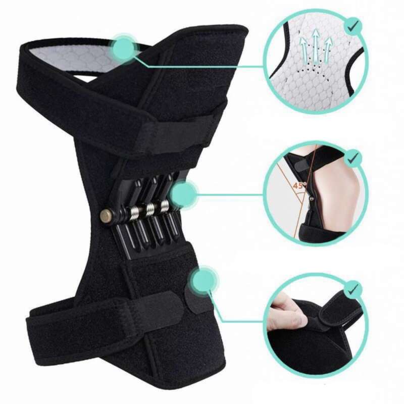Wkładki stabilizujące Power Knee mogą wytrzymać ciężar około 20 kg każdy i są wystarczająco skuteczne, aby zmniejszyć ciężar około 40 kg z własnej wagi. Ten przełomowy produkt pozwala łatwo podnieść kolano podczas zginania lub kucania obiema nogami. Te podkładki stabilizujące są idealne dla osób, które ćwiczą, pracujących mężczyzn i kobiet, którzy kucają cały dzień a nawet pieszych, którzy chodzą po górach w celu fitnessu i zabawy. Jest również świetny do różnych sportów, takich jak wspinaczka górska, jazda na rowerze, golf, badminton, treningi i wiele innych.