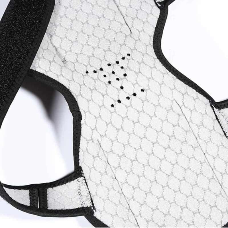 Stabilizator posiada oddychającą siatkę i antypoślizgowy materiał. Regulacja długości na rzepy ułatwia zakładanie i umożliwia noszenie ich wewnątrz lub na zewnątrz ubrania.