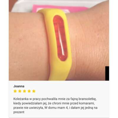 Opaska AntiKomary jest skuteczną naturalną ochroną, całkowicie nietoksyczną, ponieważ zawiera tylko ampułkę z naturalnymi składnikami.