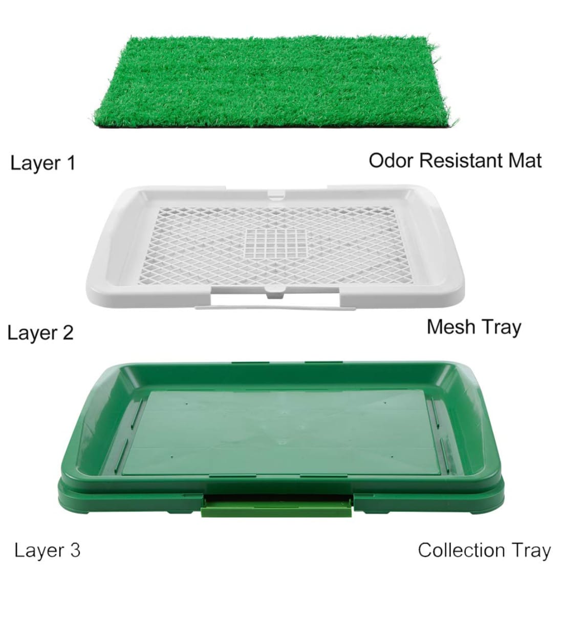 Trawa jest umieszczona w tacy, na warstwie izolującej trawę od zbierającego się w podstawie moczu. Gdy pies załatwi się na trawę wszystko przenika przez sztuczną trawę, w spodniej części specjalnie wyprofilowane rynienki odprowadzają całość moczu do trzeciej warstwy miski czyli podstawy która gromadzi całość moczu.