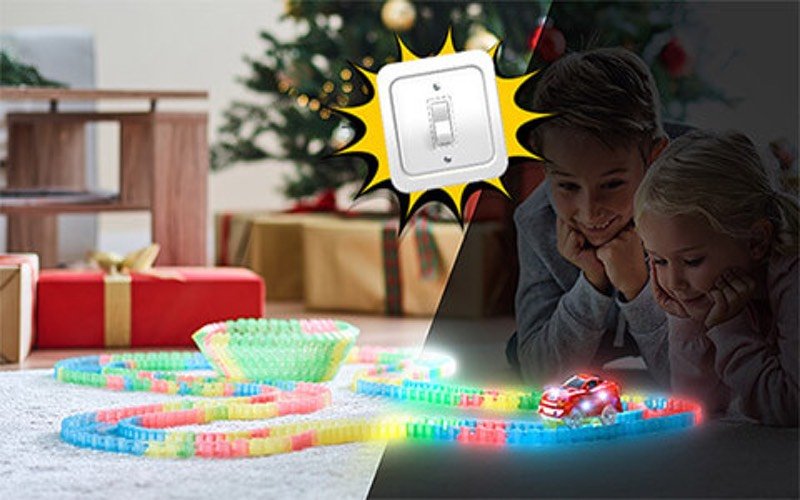 MagicTracks to zupełnie nowy tor wyścigowy, który wygina się tak, jak chcesz. Jak za pomocą magii – zmień swój tor o 360 °. Możesz zmieniać kierunki jazdy nawet podczas odprawy! Po prostu połącz części razem, a otrzymasz zupełnie nową trasę, taką jak chcesz. Jeszcze najlepiej, wyłącz światło, ponieważ MagicTrack świeci w ciemności!